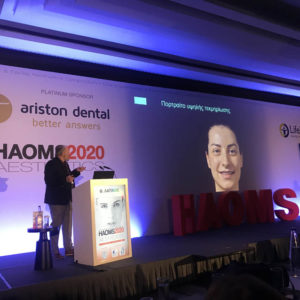 Στη σκηνή του ΗΑΟΜS απολαύσαμε επίσης τον γναθοπροσωπικό χειρουργό, Prof. Dr. Maurice Mommaerts από τις Βρυξέλες, ο οποίος χάρισε απλόχερα στο κοινό γνώση και εμπειρία μέσα από παρουσίαση κλινικών περιστατικών και τις ομιλίες “Facelift without intubation or IV sedation/Lip Lift using suspension micro-screws” και “Patient Specific Facial Contouring Implants”.