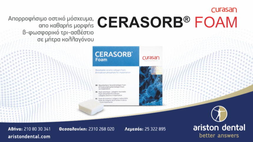 CERASORB® Foam Απορροφήσιµο οστικό µόσχευµα, απο καθαρής µορφής β-φωσφορικό τρι-ασβέστιο σε µήτρα κολλαγόνου Το [...]