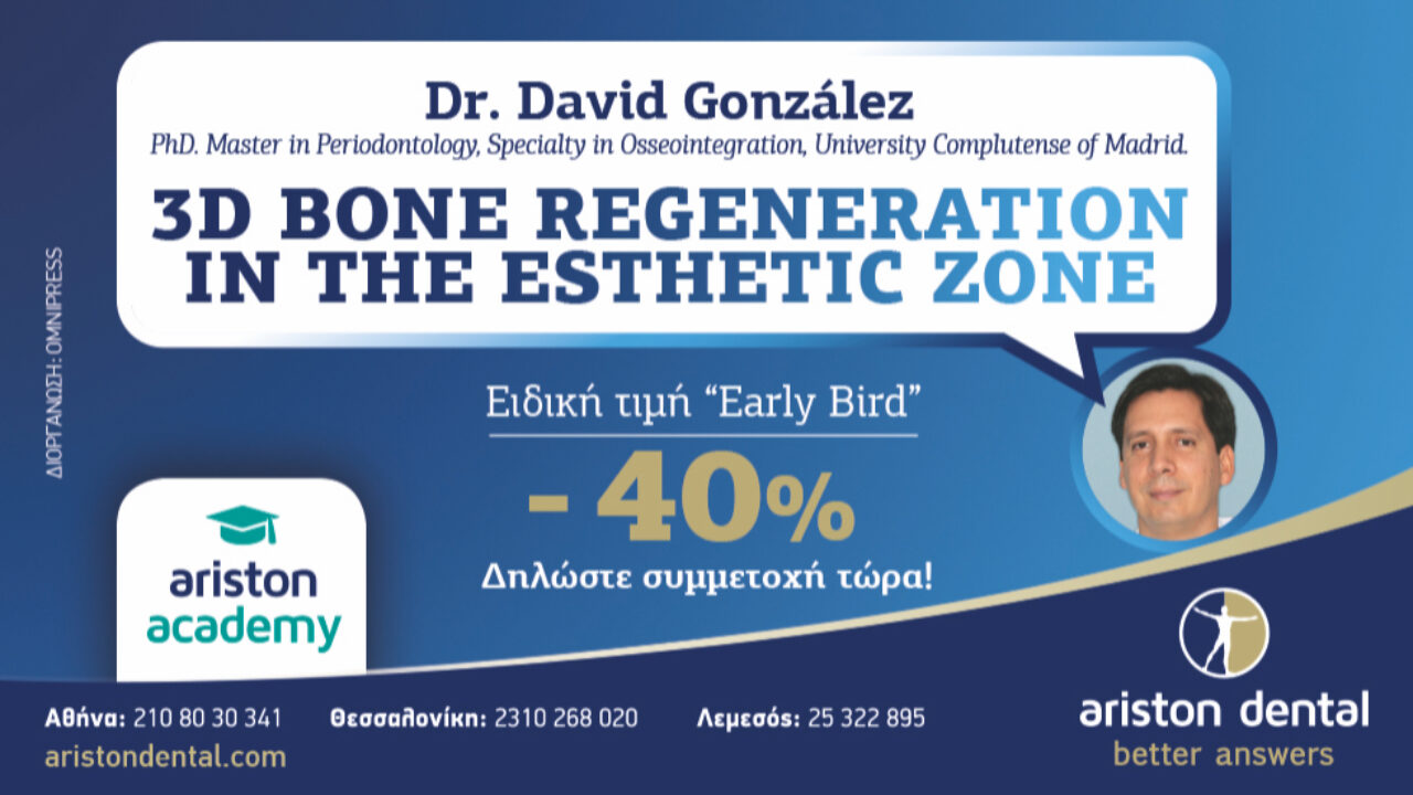 “Η Ariston Dental πραγµατοποιεί διηµερίδα µε οµιλητή έναν από τους πιο λαµπρούς χειρουργούς και δασκάλους Περιοδοντολογίας και Αναγεννητικής Εµφυτευµατολογίας στην Ευρώπη, τον Dr. David González.