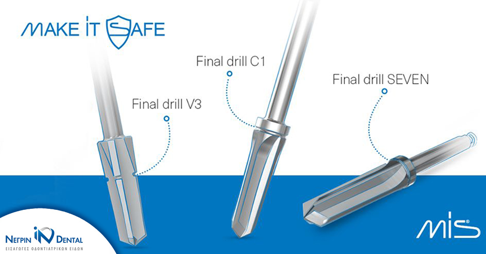 Ασφάλεια: Κάθε εμφύτευμα SEVEN συνοδεύεται από αποστειρωμένο τελικό τρυπάνι μίας χρήσης που αντιστοιχεί στη σωστή διάμετρο και μήκος, επιτρέποντας μία σύντομη ασφαλή διαδικασία τρυπανισμού.