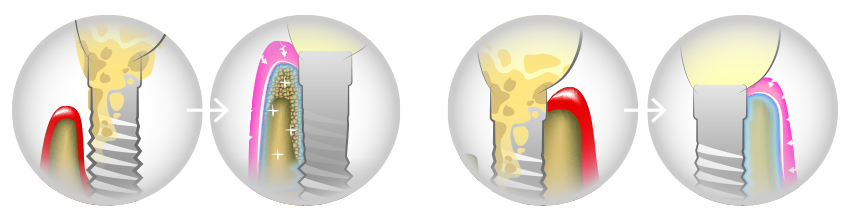 Μετά από την πραγµατοποίηση περιεµφυτευµατικής οστεοπλαστικής µε φρέζες για την εξασφάλιση επιφανειακής υγιεινής, χρησιµοποιείται οστικό µόσχευµα για να γεµίσει το έλλειµµα. Αυτό, εφαρµοζόµενο µε την αποκλειστική σύνθεση του MTD µε gel χλωρεξιδίνης και ορθοφωσφορικό οξύ, εξασφαλίζει την καλύτερη στην κατηγορία του µακροπρόθεσµη απολύµανση για να βοηθήσει στην ιστική ανάπλαση. Το πατενταρισµένο προϊόν συνδυάζει µία ενεργό σύνθεση ευρέως αντιµικροβιακού φάσµατος µε αναπλαστικά υλικά για επιτάχυνση της ιστικής αύξησης και για να προσφέρει στους ασθενείς µία τεκµηριωµένη, σύντοµη, προσιτή οικονοµικά και αξιόπιστη επιλογή για να σώσουν το εµφύτευµά τους.